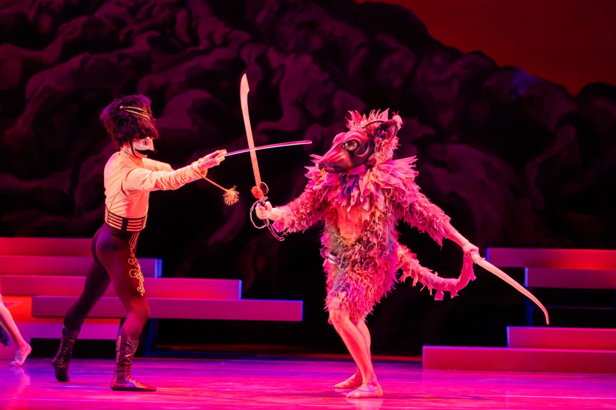 That night Clara feels terror looking at the glowing red eyes of impudent, swaggering, overconfident, invaders descending from the trees. These dancing pests of Aotearoa, possums and stoats, are hilarious. The Nutcracker Officer and his soldiers fight valiantly in their military formations but are overcome. When all seems lost bold Clara saves the day by expertly tossing a jandal to knock out the wilful, cheeky intruders.